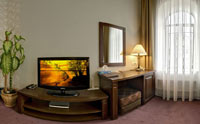 Все номера оборудованы карточками электронного доступа (электронные замки), пожарной и охранной сигнализацией, телефоном, интернетом (Wi-Fi), мини-баром, мини-сейфом, спутниковым TV, кондиционером, феном, LCD телевизором 32”. Стоимость номера за сутки от 590 до 855 грн.